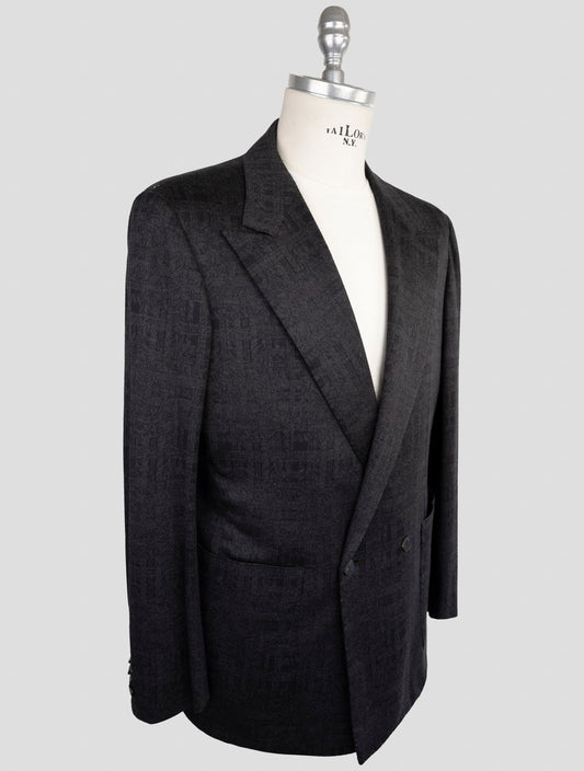 Kiton KNT Dark Gray Textured Wool Double Breasted Suit Italian