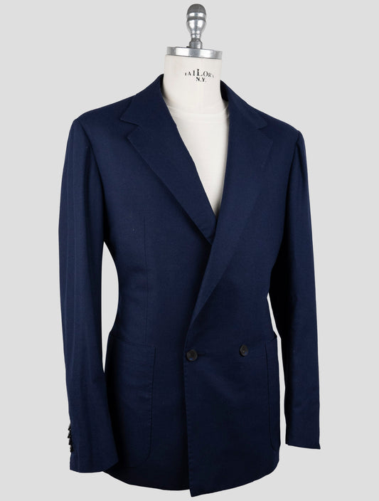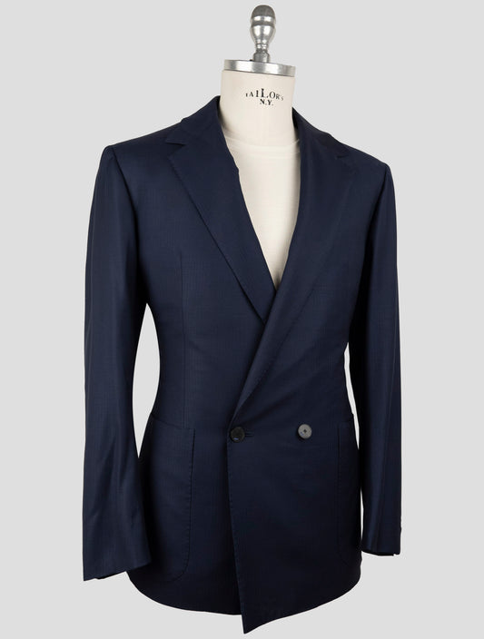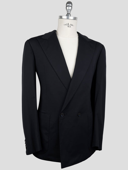 Kiton KNT Handmade Virgin Wool Double Breasted Suit Dark Blue