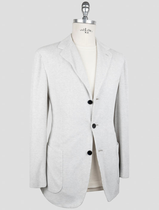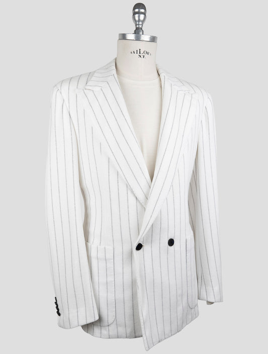 Kiton KNT Striped Cotton Double Breasted Suit White Gray Italian