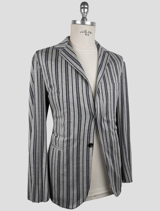 Kiton KNT Gray Blue Striped Cotton Cashmere Silk Suit - Italian