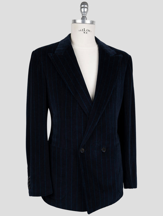 Kiton KNT Blue Velvet Striped Double-Breasted Suit - Cotton Blend