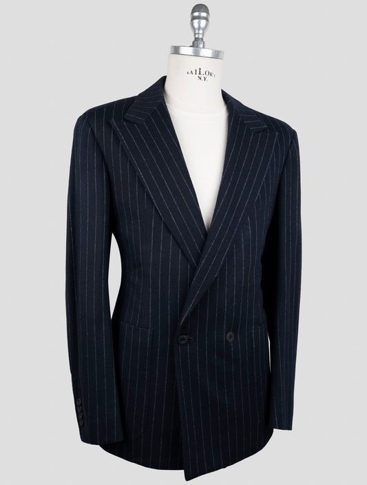 Kiton KNT Blue Striped Wool Double Breasted Suit - Italian Handmade