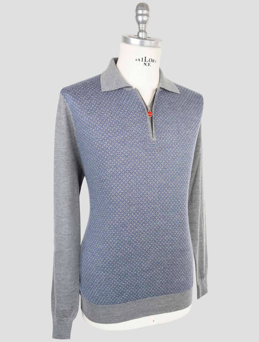 Kiton Cashmere Silk Half-Zip Polo Sweater Blue Gray Italian
