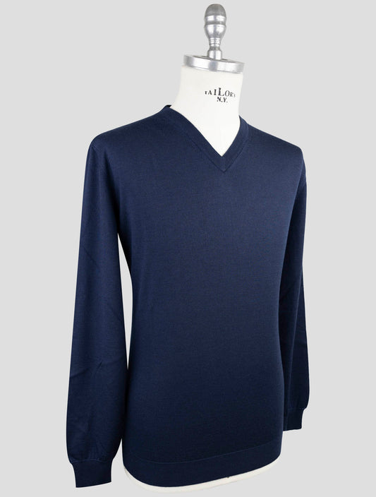 Kiton Cashmere Silk V-Neck Sweater Blue - Handmade Italian