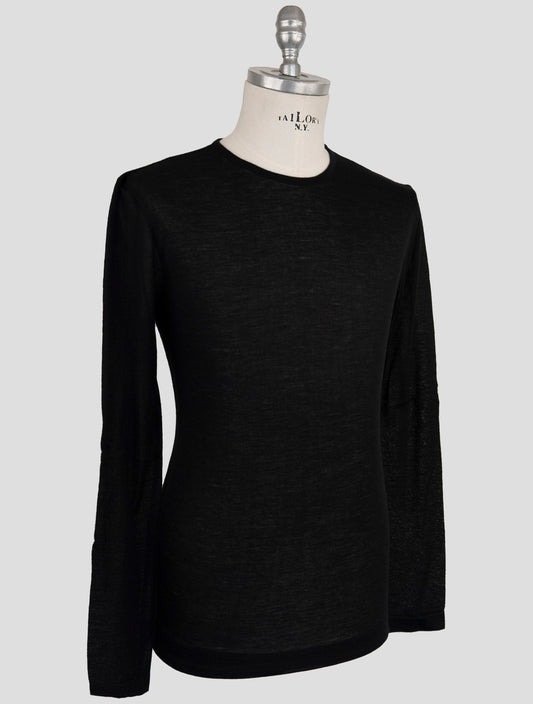 Kiton KNT Cashmere Silk Crewneck Sweater Black Handmade Italy