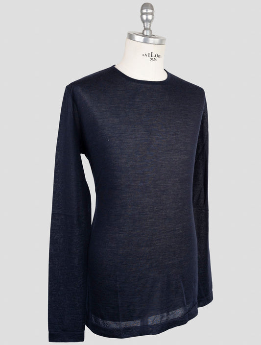 Kiton KNT Blue Cashmere Silk Crewneck Sweater - Handmade Italy
