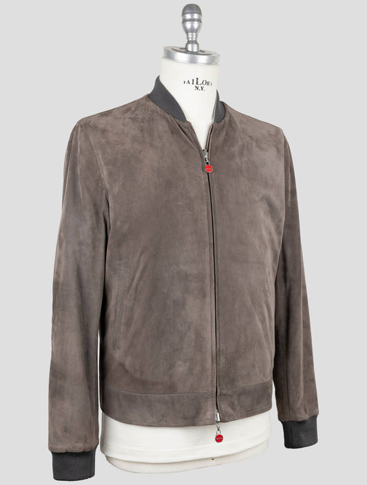 Kiton Premium Wool Leather Suede Coat Brown Italian Handmade