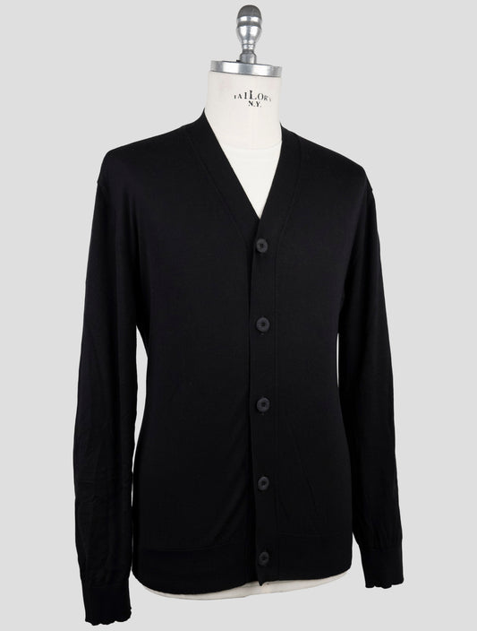Kiton KNT Premium Cotton Cardigan Black Italian Luxury Sweater