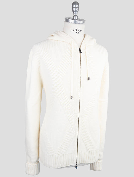 Kiton KNT White Virgin Wool Full Zip Sweater - Italian Luxury