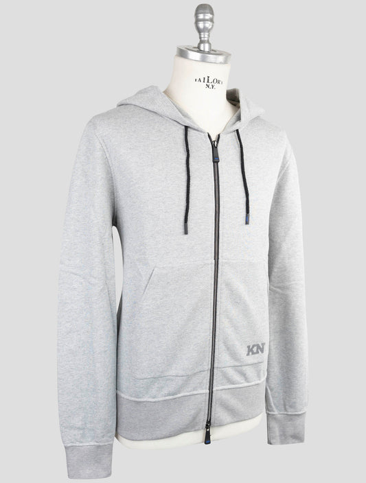 Kiton KNT Premium Gray Cotton Full Zip Sweater - Made in Italy