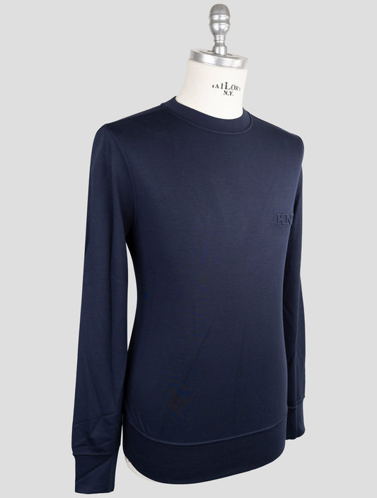 Kiton KNT Blue Viscose Crewneck Sweater - Italian Luxury Knit