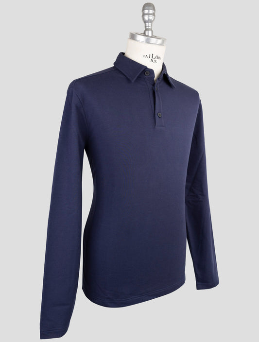 Kiton KNT Premium Cotton Stretch Polo Sweater Blue Italy