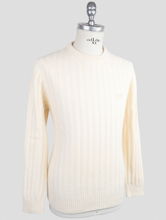 Kiton KNT White Virgin Wool Crewneck Sweater Italian Luxury