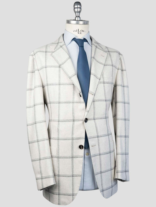 Kiton Men's Cashmere Silk Blazer Blue White Italian Handmade