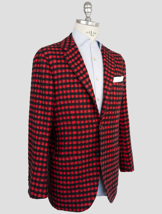 Kiton Luxury Cashmere Silk Blazer - Black Red Pied de Poule