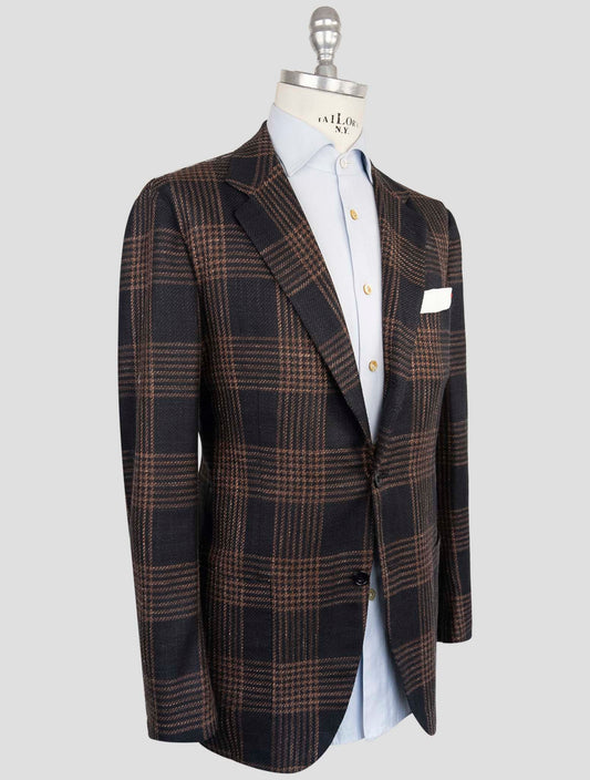 Kiton Blue Brown Cashmere Virgin Wool Silk Linen Blazer