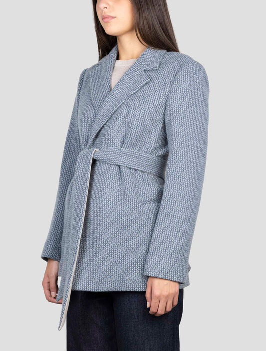 Kiton Women's Light Blue Silk Blazer - Handmade Italian Regular Fit