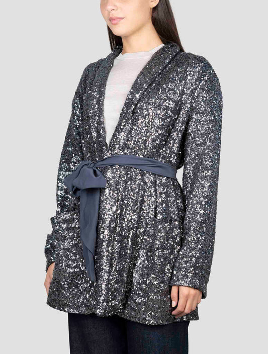 Kiton Silver Silk Blazer Women's Handmade Italian Luxury Regular