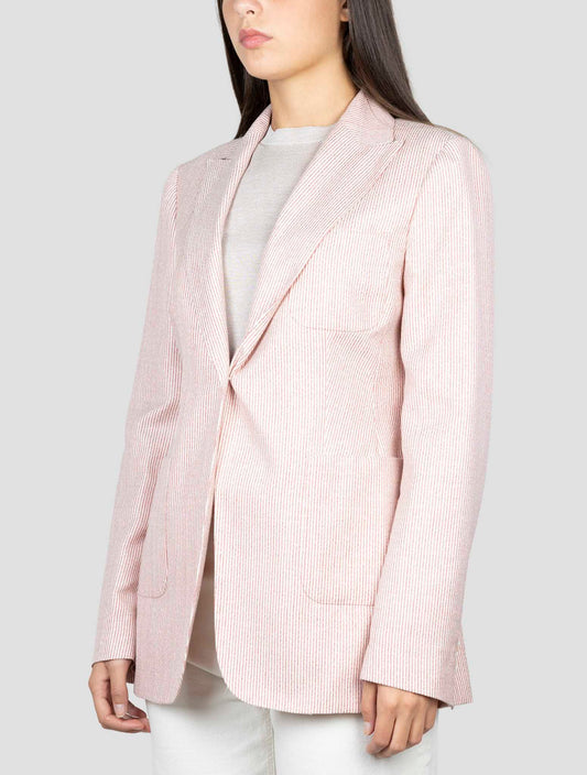 Kiton Women's Red White Striped Cashmere Silk Linen Blazer