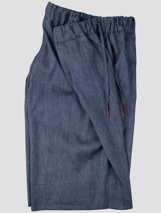 شورت قصير من كيتون باللون الأزرق من الكتان والكشمير والحرير