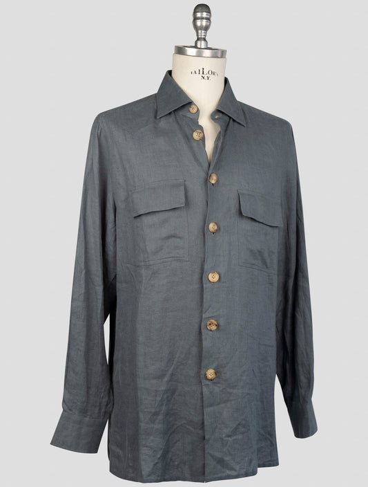 Kiton Italian Denim Cotton Shirt - Premium Handmade Casual Wear
