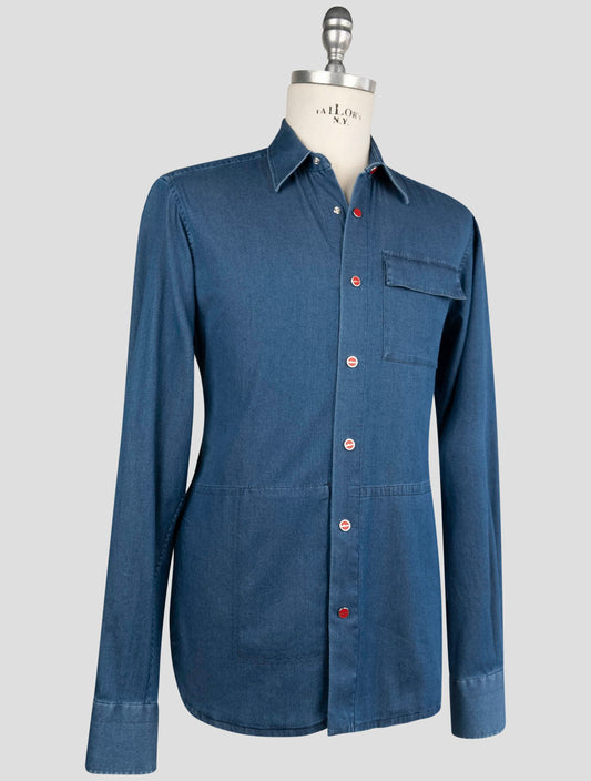 Kiton Blue Cotton Stretch Shirt - Premium Italian Denim BUBA