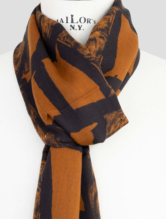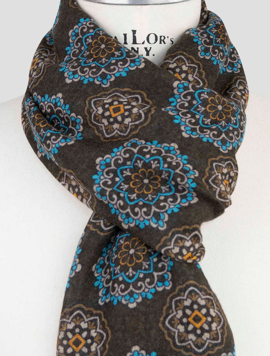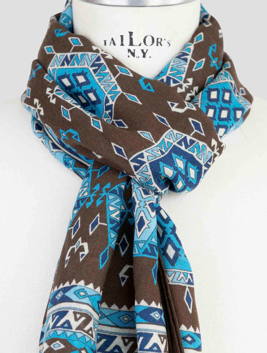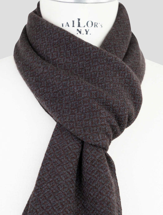 Kiton Textured Cashmere Silk Scarf Brown Blue Italian Handmade
