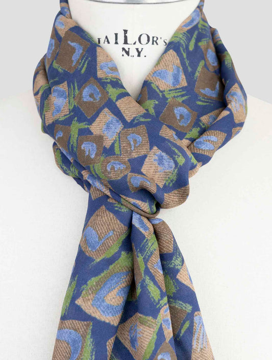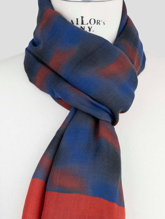 Kiton Handmade Cashmere Silk Scarf Brown Blue 70x200cm