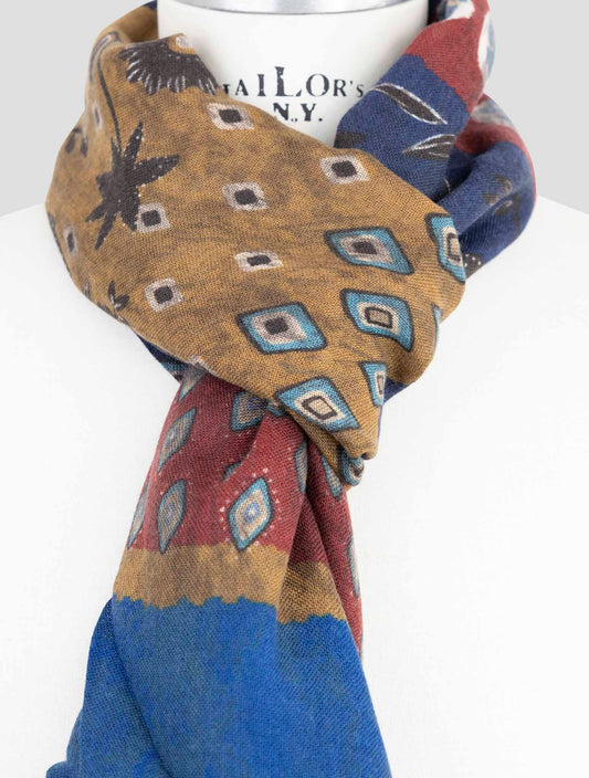 Kiton Pure Cashmere Scarf - Geometric Multicolor Italian 70x200cm