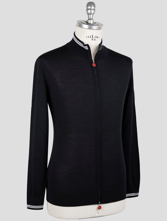 Kiton Premium Black Wool Full Zip Sweater - Italian Crafted