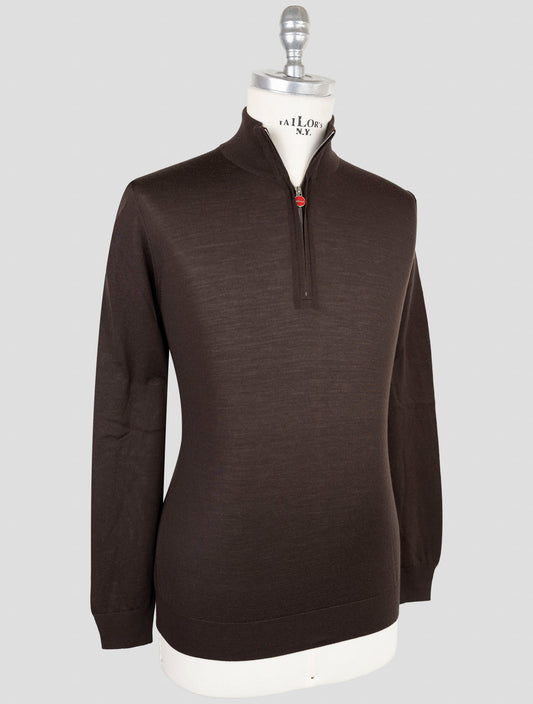 Kiton Premium 14 Micron Wool Full Zip Sweater Brown Diamante Blu