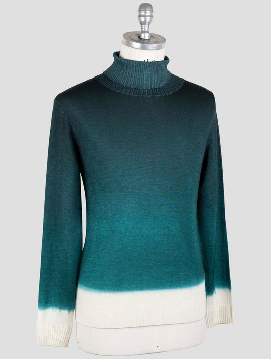 Kiton Luxury Green White Cashmere Silk Turtleneck Sweater