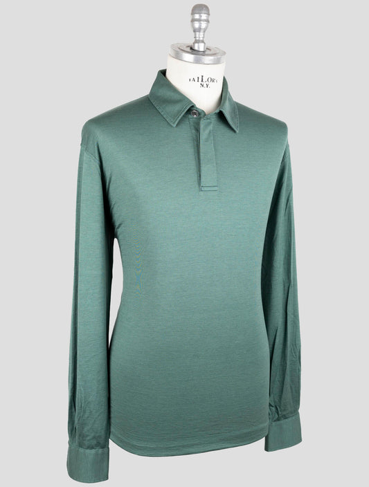 Kiton Luxury Green Silk Cotton Polo Sweater - Italian Made