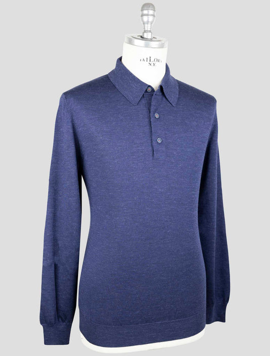 Kiton Luxury Silk Cashmere Linen Polo Sweater Blue Made Italy