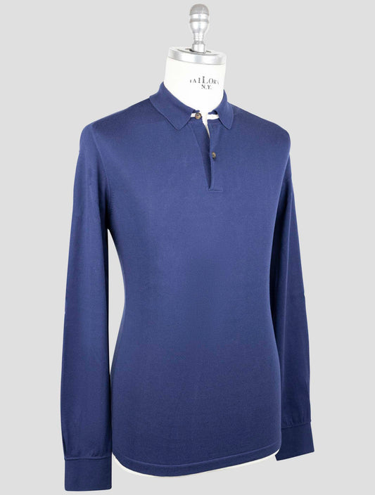Kiton Premium Blue Cotton Polo Sweater - Made in Italy