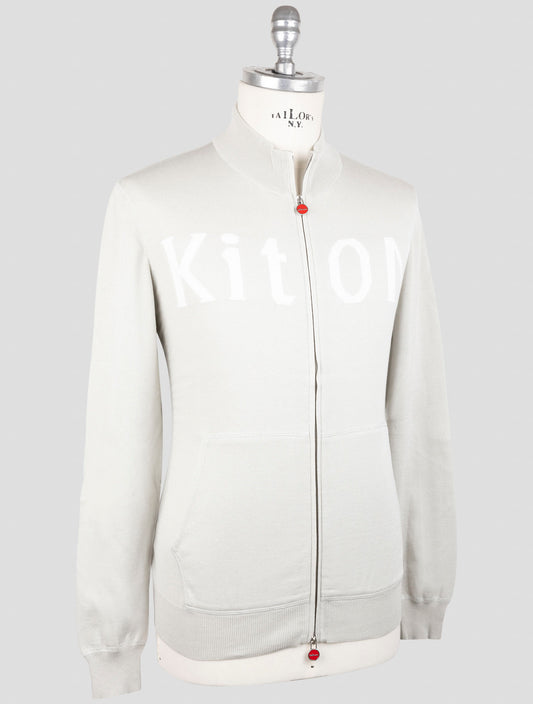Kiton Premium Cotton Full Zip Sweater Gray Made in Italy