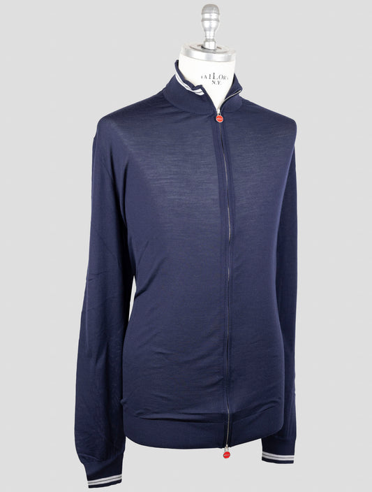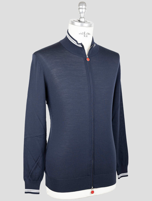 Kiton Premium Blue Wool Full Zip Sweater - Italian Luxury Menswear