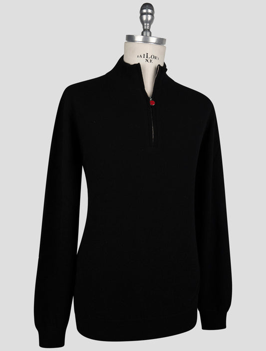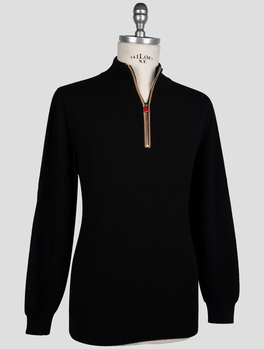 Kiton Italian Cashmere Half-Zip Sweater - Black Luxury Knitwear