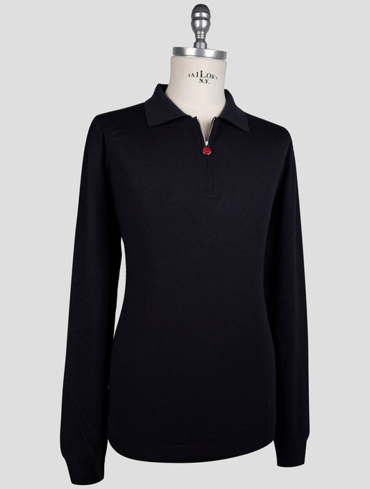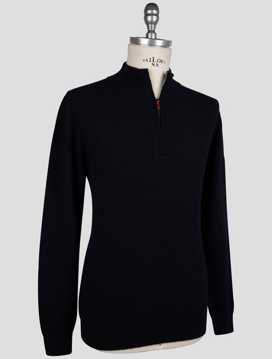 Kiton Dark Blue Wool Sweater Half Zip