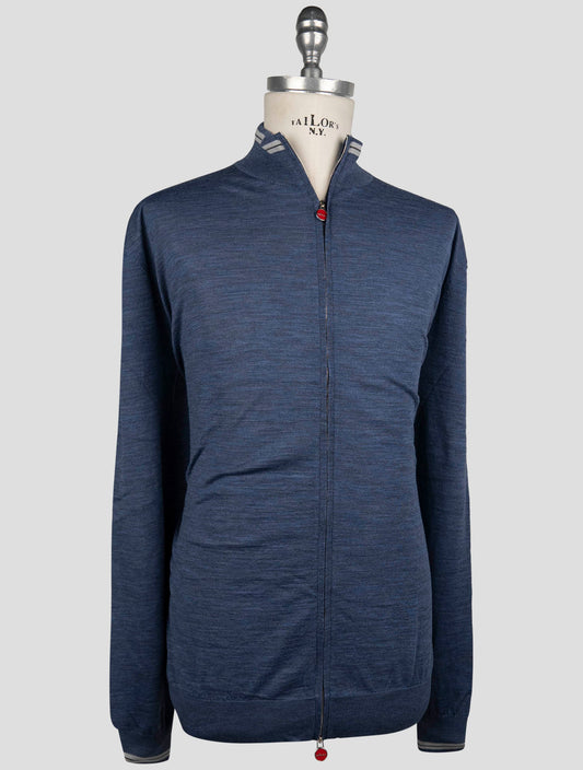 Kiton Blue Wool Sweater Full Zip
