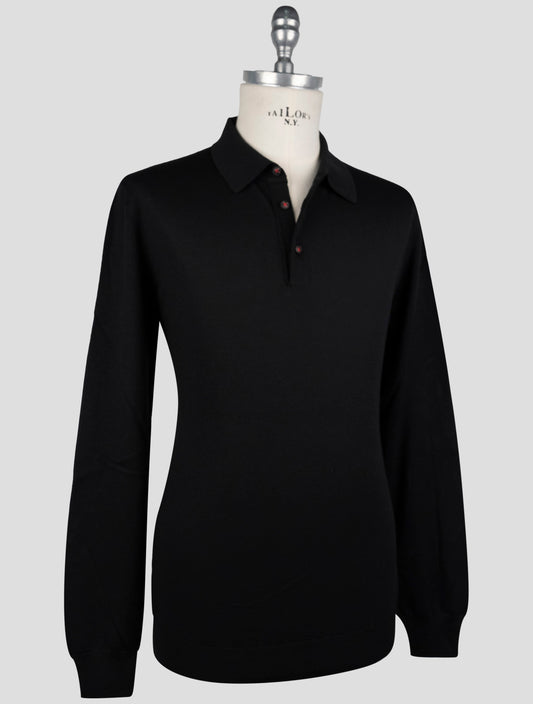 Kiton Black Wool Polo Sweater - Italian Made Premium Knitwear