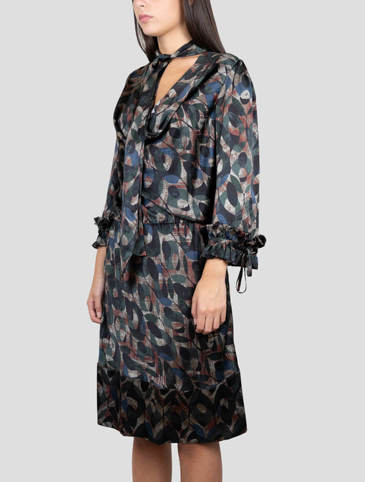 Kiton Handmade Geometric Viscose Dress Multicolor Italian Designer