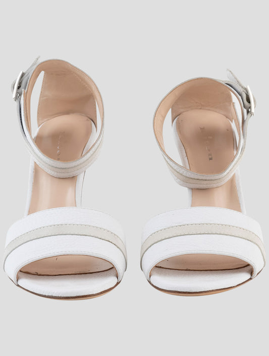 Kiton White Leather Slingback Heels - Handmade Italian Designer