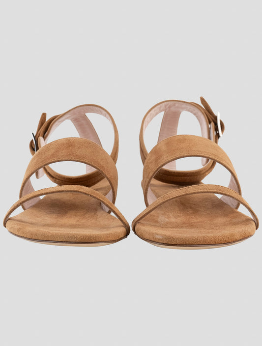 Kiton Brown Suede Leather Slingback Heels - Italian Handmade