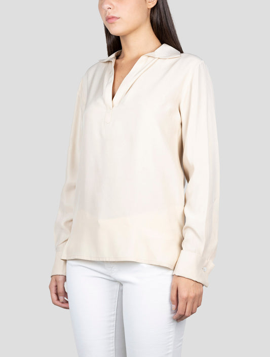 Kiton Women's Pure Silk Beige Shirt - Handmade Italian Regular Fit