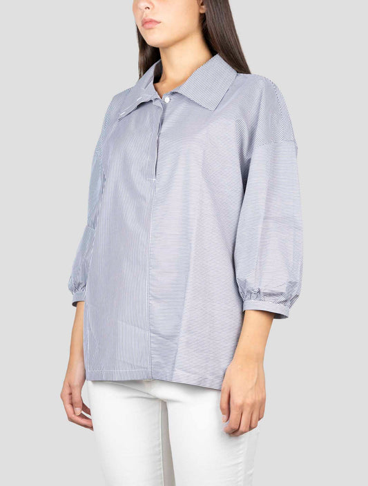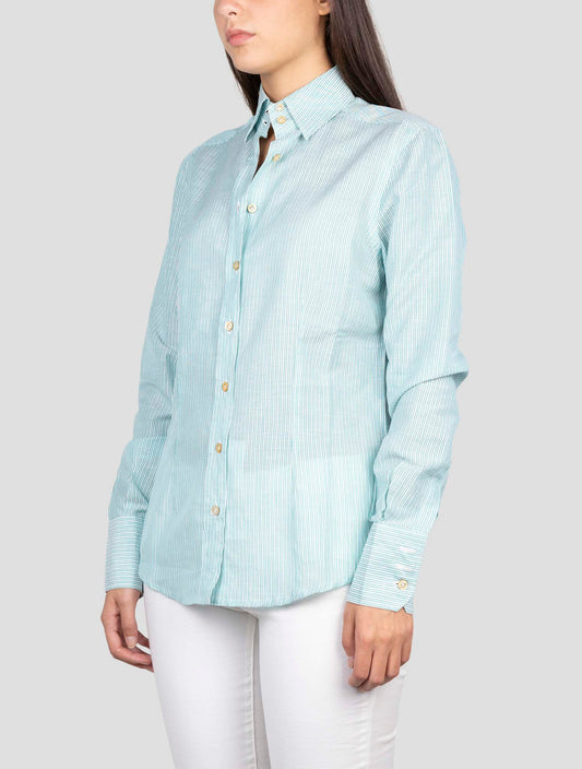 Kiton Women's Cotton Shirt Blue White Handmade Regular Fit