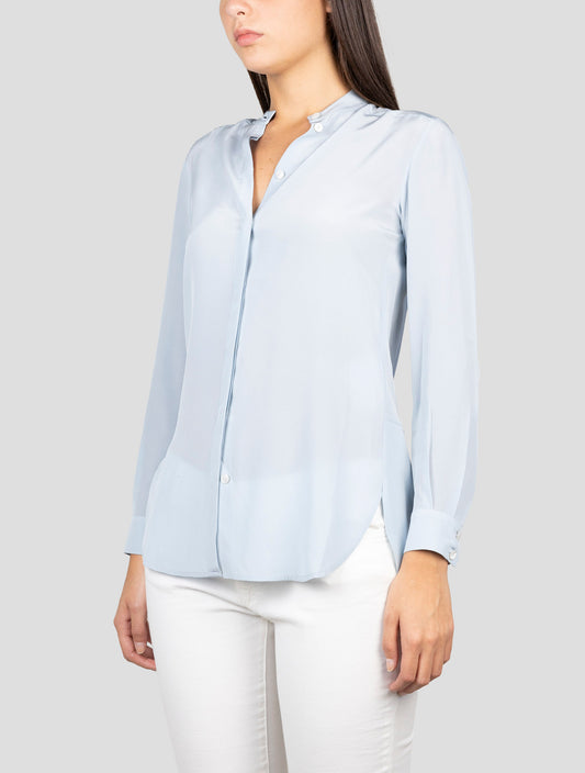 Kiton Women's Pure Silk Light Blue Shirt - Handmade Italian