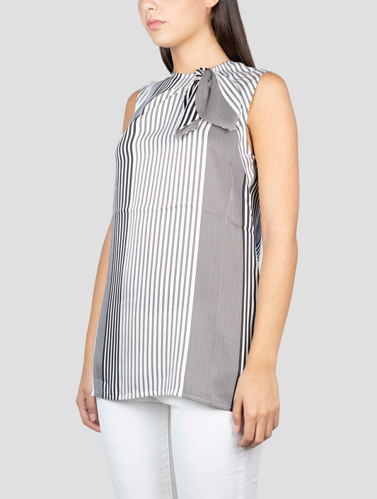 Kiton Handmade Italian Striped Polyester Shirt Women's Black White