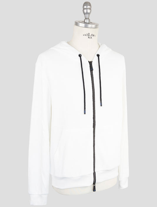 Kiton KNT White Cotton Full-Zip Hoodie - Premium Italian Made