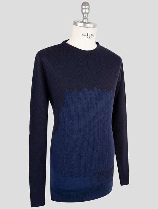 Kiton KNT Premium Blue Wool Cashmere Crewneck Sweater Italian